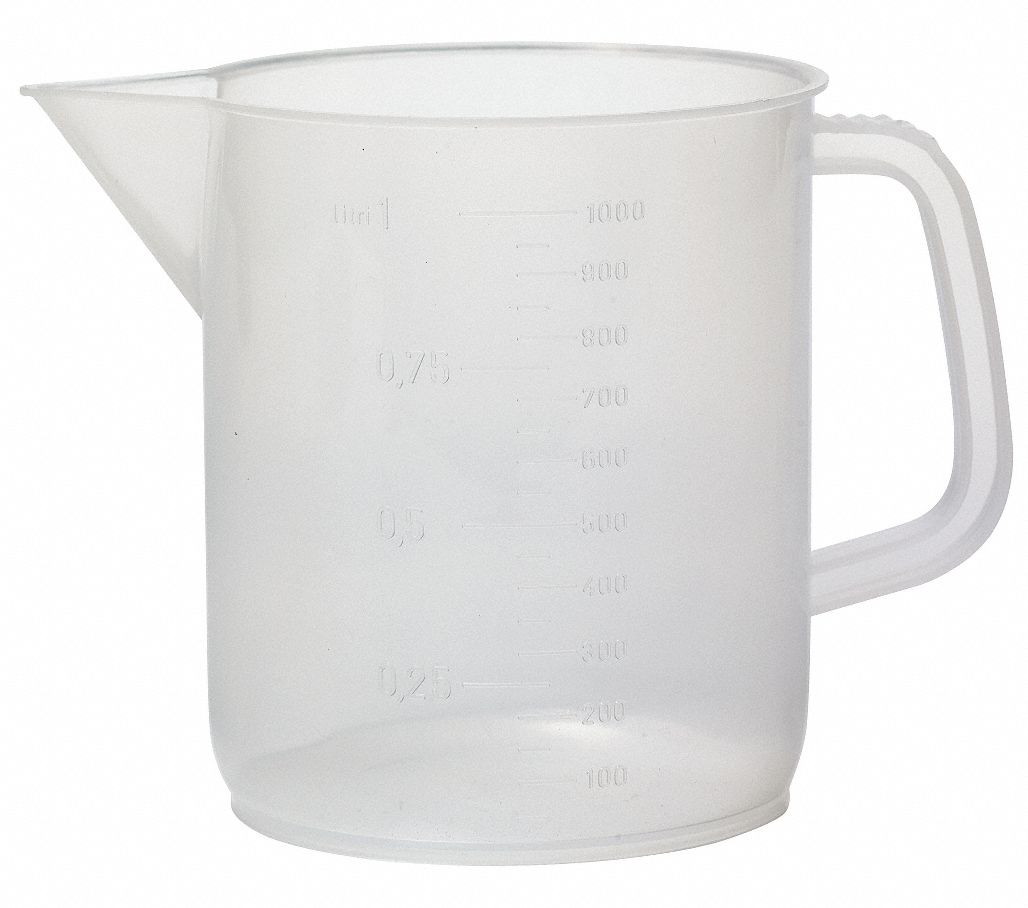 The jug features a handle that is easy to use and a graduated measuring scale, showing both liters and milliliters. As it's made from durable polypropylene , the beaker is both lightweight and impervious to most chemical substances. That means it won't corrode or suffer damage, regardless of the substances you need to measure. Polypropylene is also highly impact-resistance, making the jug practically unbreakable under normal conditions. Used for: