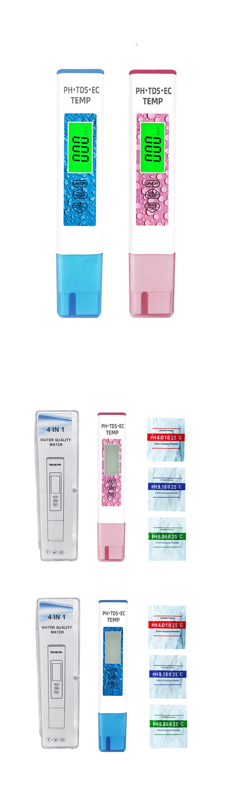 The MF-01 4-in-1 Test Meter in pink is a versatile meter that can be used for measuring pH levels, temperature, TDS (Total Dissolved Solids), and EC (Electrical Conductivity) in water or other liquids. It is compact and easy to use, making it ideal for a variety of applications such as aquariums, hydroponics, and water testing. The pink color adds a fun and stylish touch to the meter.